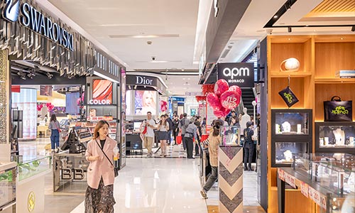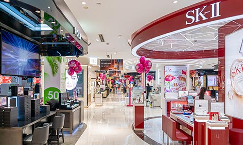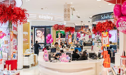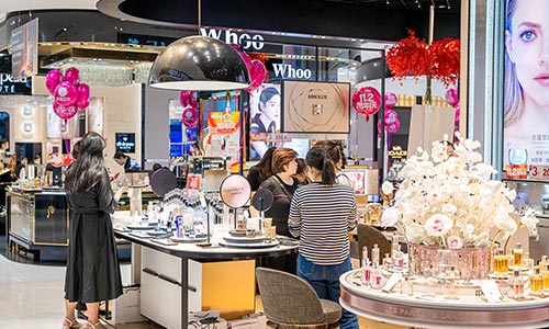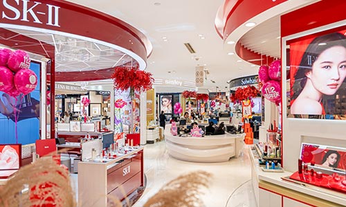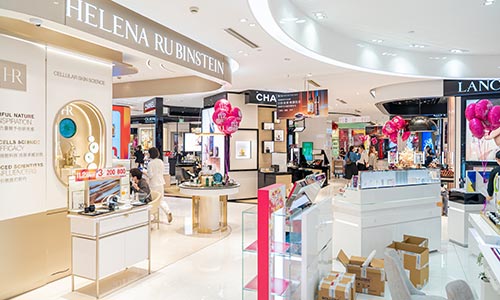 经营面积3.5万平方米,经营楼层从地下室至十一楼共12个楼层,涵盖了美妆、黄金珠宝、鞋包、服饰、家居电器等十余个品类,集聚了以香奈儿、迪奥、阿玛尼、海蓝之谜、欧米茄为代表的数十个国际高端品牌及多个国内一线名牌。