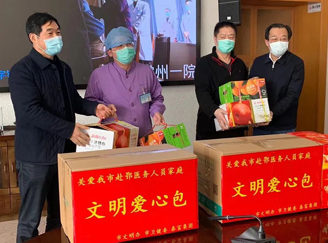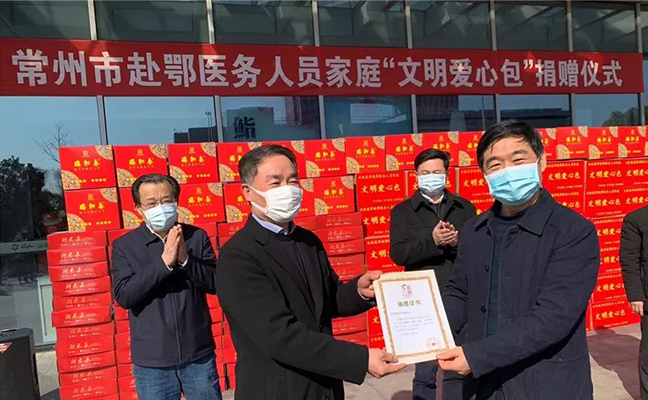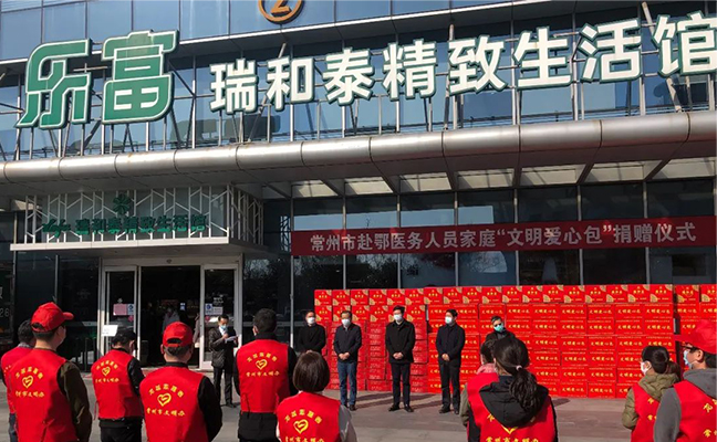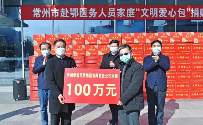 泰富集团言必行,行必果,积极响应市文明办、市卫健委等部门发出的当好疫情宣传员、守门员、示范员、战斗员和服务员的倡议,成为首批向常州美德基金会捐赠善款的文明单位企业,捐赠100万元专项用于向常州105户赴湖北医务人员的家庭配送“文明爱心包”,每次每户家庭按照500元标准配送,每周配送1次,直至疫情结束。