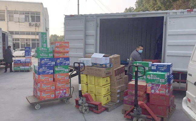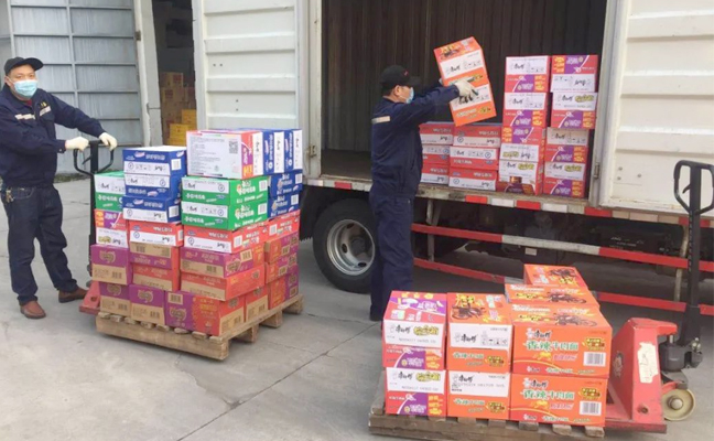 瑞和泰物流中心的配送人员在各供应商仓库封仓无人配送的情况下,他们主动安排大库车辆到供应商仓库拉货,及时将货物配送到门店,主要以米面粮油、方便食品、生鲜蔬菜等民生商品为主,以此解决市民朋友的燃眉之需。